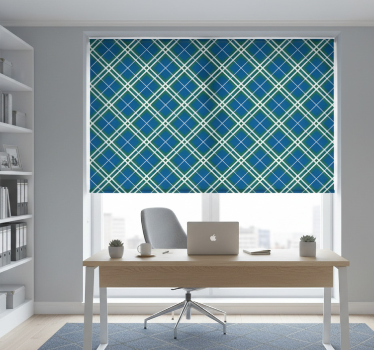 Roleta do kancelárie v modro-zelenom škótskom káre