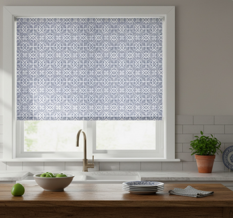 Roleta do kuchyne modrý osmiuholník portugalská dlažba