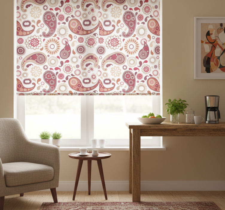 Roleta do kuchyne s bielym paisley vzorom