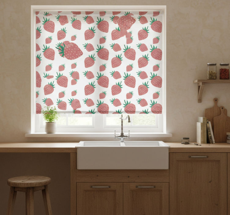 Roleta do kuchyne s jahodovým vzorom