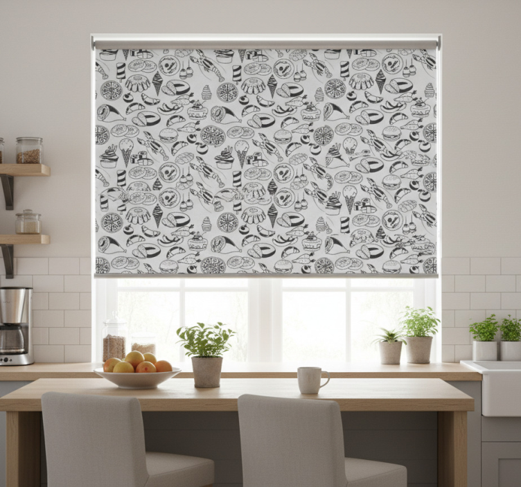 Nákup rolety do kuchyne s potlačou jedálenských doodlov v našom internetovom obchode vám zaručuje kvalitu a jedinečný dizajn. Sme presvedčení, že našim zákazníkom ponúkame len to najlepšie. Nezabudnite, že si môžete vybrať z rôznych štruktúr, aby ste dosiahli požadované množstvo svetla a súkromia!