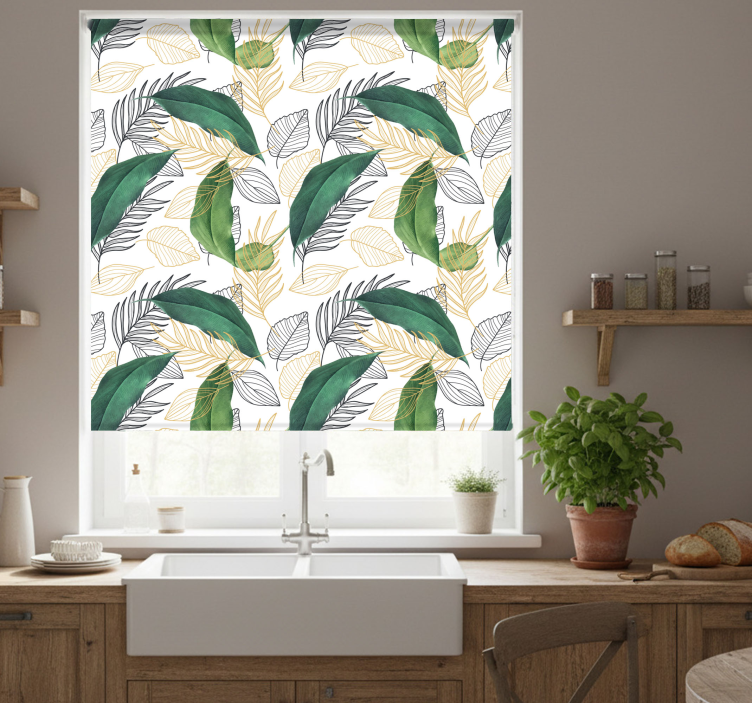 Roleta do kuchyne so zelenými a zlatými listami je ideálnym spôsobom, ako oživiť priestor a pridať mu osobitý šarm. Tento výrobok zaujme každého návštevníka a vytvorí útulnú atmosféru, ktorá povzbudí k pohode a relaxácii. Jeho nádherný dizajn dokonale ladí s rôznymi interiérovými štýlmi, od moderného po rustikálny. Okrem toho, jeho schopnosť regulovať svetlo a súkromie z neho robí praktický a estetický doplnok do vašej kuchyne!