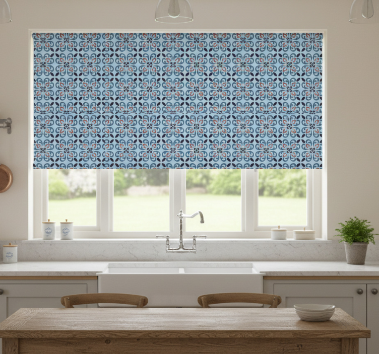 Roleta do kuchyne svetlomodrá okrúhla portugalská dlažba