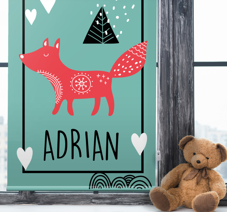 Naša roleta na mieru vlastný dizajn líšky je jedinečným kúskom, ktorý ozdobí váš interiér. S nádherným severským dizajnom sa v ňom prelínajú hravé tvary líšky a srdcia, ktoré evokujú harmóniu s prírodou. Personalizované stvárnenie zobrazuje stromy, čím dodáva priestorom útulnosť a jedinečný charakter. Tento produkt je skutočne zvykom, ktorý sa prispôsobí vašim potrebám a vkusu!