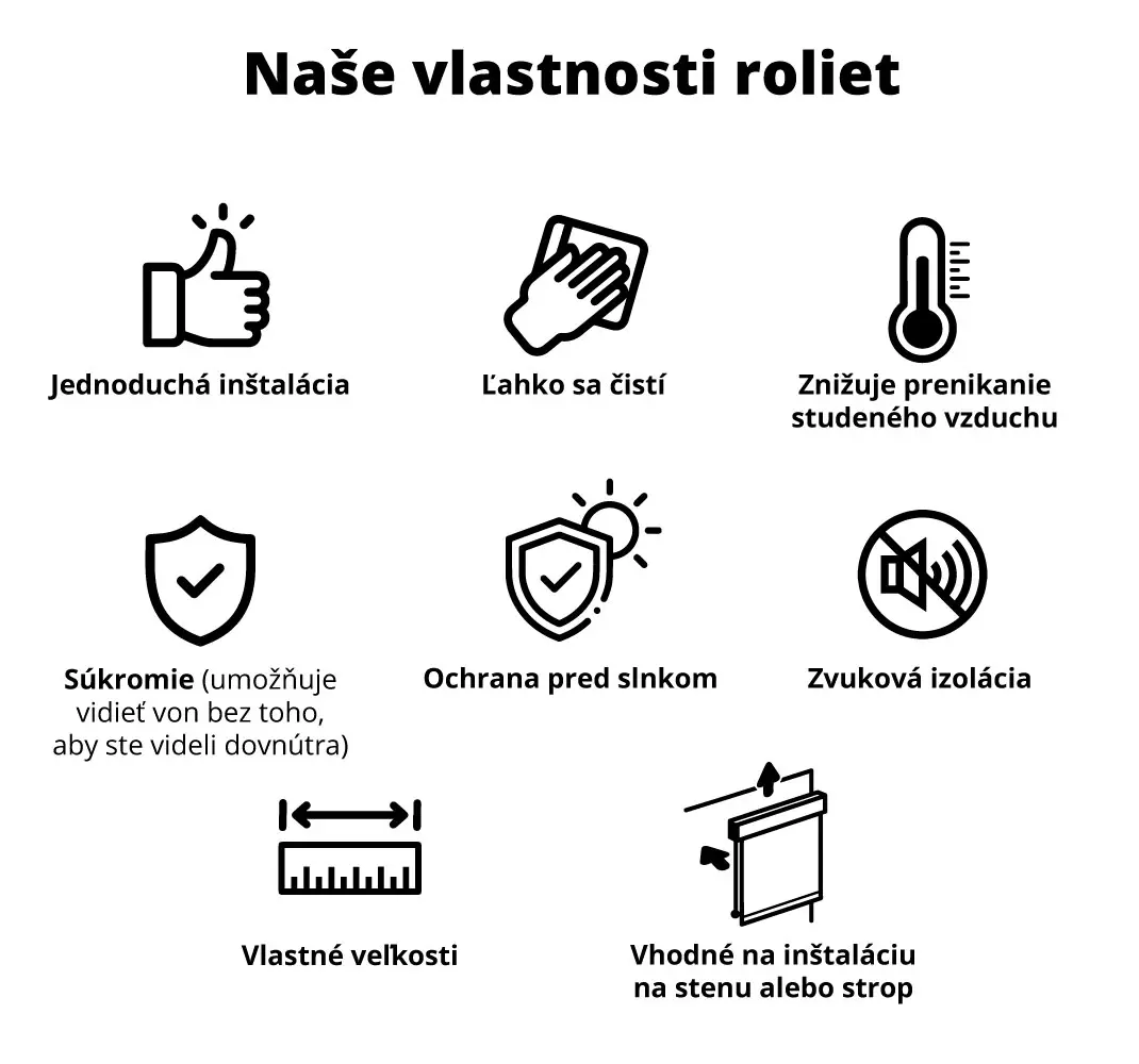 Rolety na mieru sú modernou a lacnou alternatívou k výzdobe každého okna. Inštalácia a montáž žalúzií Tensticker je veľmi jednoduchá, zvládnete to sami bez toho, aby ste investovali príliš veľa úsilia a času. Upozorňujeme, že naše rolety sú dodávané kompletne zmontované a vyžadujú iba inštaláciu konzol.