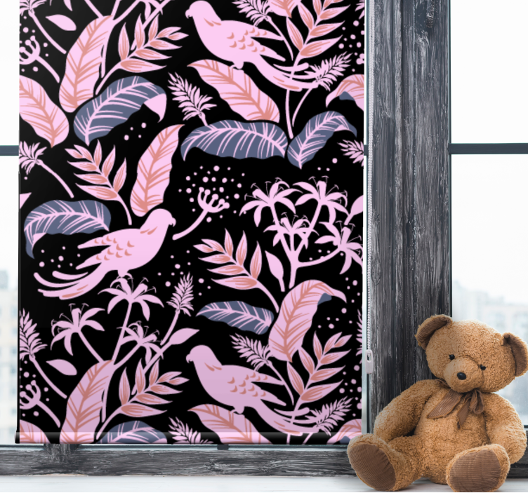 Roleta zvieratká motívy tropických vtákov je skutočným umeleckým dielom, ktoré ozdobí každý interiér! Tento jedinečný dizajn kombinuje krásu vtákov a listov v nádherných ružových a zelených odtieňoch, vytvárajúc dokonalú harmóniu s flórou. Každý pohľad na túto roletu vás prenesie do tropického raja a vnukne vám radosť z prírody!