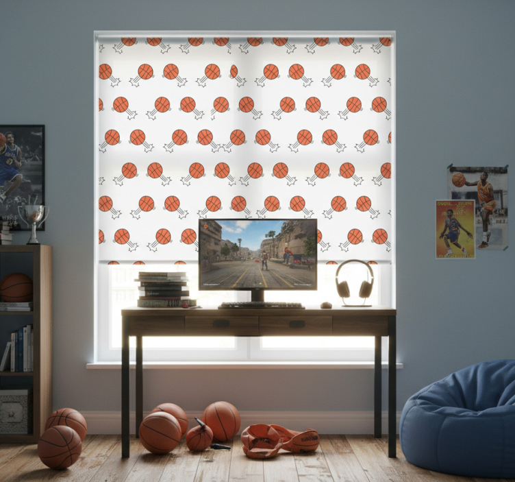 Roleta pre teenagera s pozadím ručne kreslených basketbalov