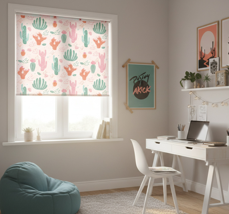 Roleta pre teenagera s retro farebným vzorom kaktusov