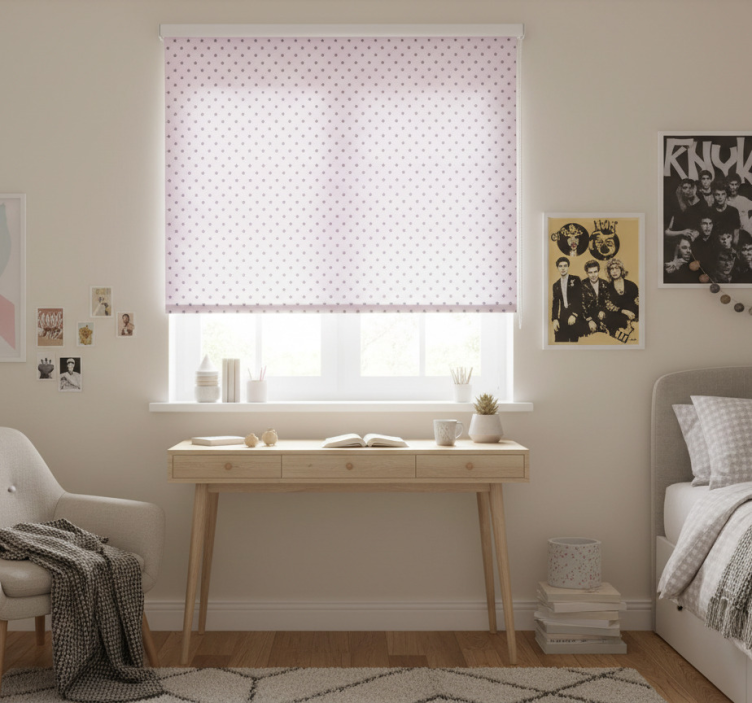 Roleta pre teenagera sivé hviezdy na ružovom pozadí