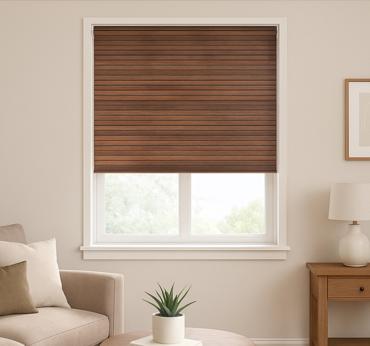 Vzorovaná roleta s rovnobežnými orechovými lamelami