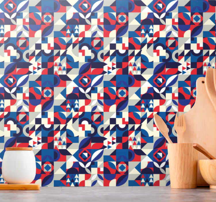 Referencia: P5168Moderná tapeta s červeným a modrým mozaikovým vzorom pre váš domov, kanceláriu a iné priestorové dekorácie