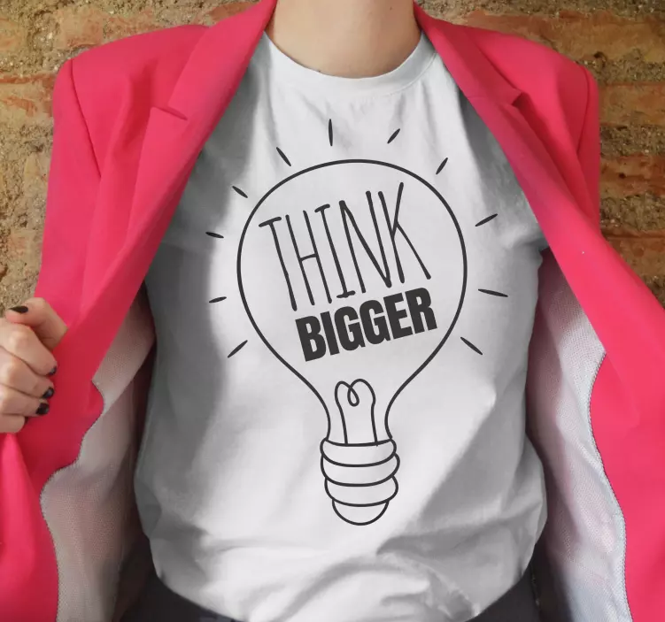 Referencia: T4862Tento dizajn zobrazuje žiarovku s frázou 'Think Bigger' tučnými písmenami. Obraz evokuje pocit inšpirácie a pozitívneho myslenia, pričom využíva jednoduché, ale silné vizuály, ktoré rezonujú s motivačnou témou.
