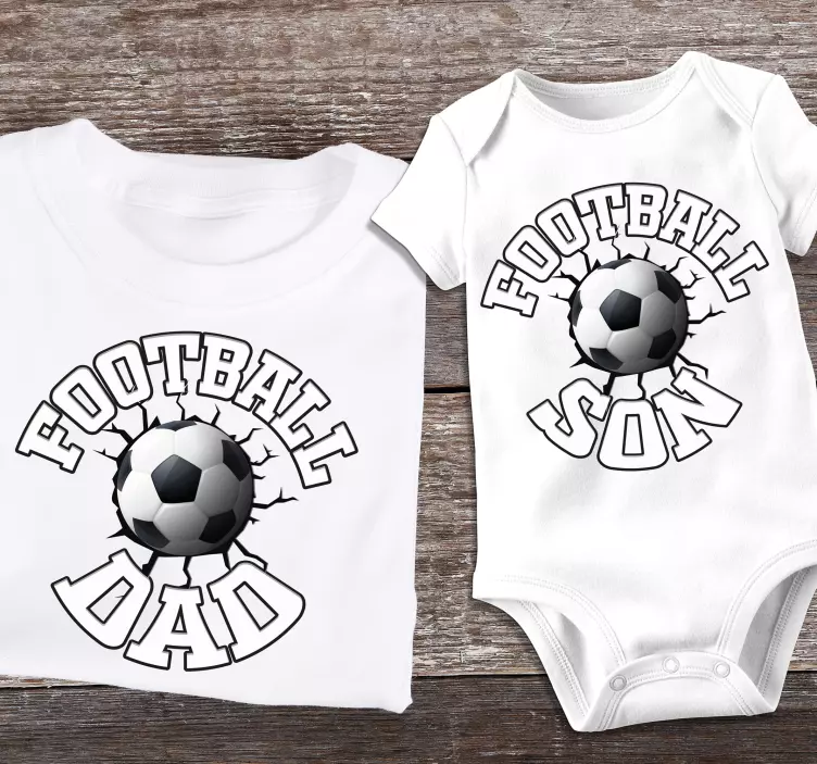 Jednoduché tričká futbal otec a syn pre športovcov. Tieto tričká sú vytvorené ako set s veľmi jednoduchým dizajnom. Na jednofarebnom podklade je nápis "FOOTBALL DAD" alebo "FOOTBALL SON" hrubým bielym písmom. S týmito produktami sa celá rodina zladí pre fandenie svojmu obľúbenému tímu. V strede nápisu je obrázok lopty a popraskané okolie pre vytvorenie dynamického efektu.. Vysoká kvalita spracovania zaručuje, že tričká otec a syn futbal si zachovajú svoj krásny, čistý vzhľad po dlhú dobu. Samozrejme si môžete zvoliť presné veľkosti. Vyrábame vysoko kvalitné produkty, ktoré zaručujú spokojnosť všetkých našich zákazníkov. Rodinné tričká s nápisom pre zladenie rodiny. Vyberte si veľkosť, obľúbenú farbu a objednajte online!