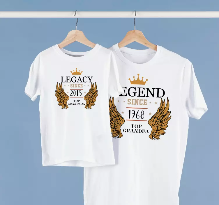 Toto tričko je dokonalý spôsob, ako ukázať svoju rodinnú hrdosť módnym spôsobom. Dizajn obsahuje korunu s krídlami a príslušný text: dedičstvo od... Najvyššieho vnuka, legenda od... Najvyššieho vnuka. Táto zhodná košeľa pre starého otca a vnuka je jedinečným spôsobom, ako ukázať rodinné puto a bude vyzerať skvele pri všetkých príležitostiach. Je vyrobená z vysokokvalitnej bavlny, ktorá sa príjemne nosí a možno ju prať v práčke, vďaka čomu je skvelým predmetom každodenného nosenia.