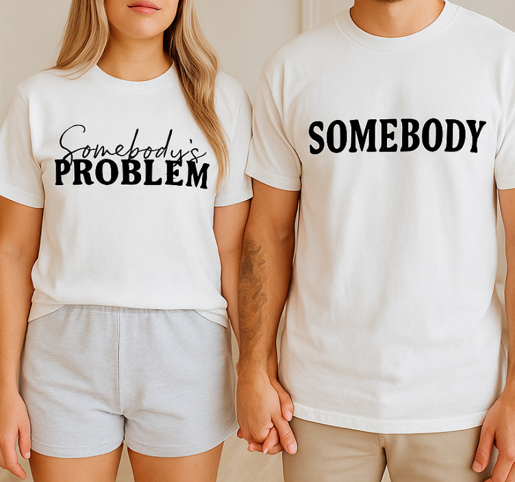 Referencia: T5488Predstavujeme Vám trišká pre páry niekoho problém, ktoré sú jedinečným spôsobom, ako vyjadriť vašu lásku a spojenie. Tieto tričká sú vyrobené z kvalitnej zmesi 85% bavlny a 15% viskózy, čo zaručuje maximálny komfort a priedušnosť. Dizajn s okrúhlym výstrihom a krátkymi rukávmi je ideálny na bežné nosenie, pričom sú dostupné v elegantných farbách – čiernej a bielej. Nezáleží na tom, či sa chystáte na romantickú večeru alebo len na prechádzku po meste, tieto tričká Vám dodajú jedinečný štýl!