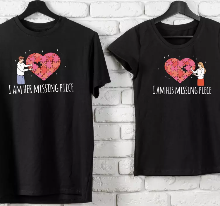 Objavte nádherné tričká pre páry puzzle srdcové spojenie, ktoré sú navrhnuté tak, aby vyjadrovali lásku a zhodu medzi dvoma ľuďmi. Tento unikátny dizajn zobrazuje chýbajúci kus srdca, ktorý dopĺňa váš partner, pričom text a romantické motívy vytvárajú vtipný a dojímavý vzhľad. Tieto zodpovedajúce tričká sú ideálnym spôsobom, ako osláviť váš vzťah a ukázať svetu, že ste spolu ako dva kusy jedného hlavolamu!