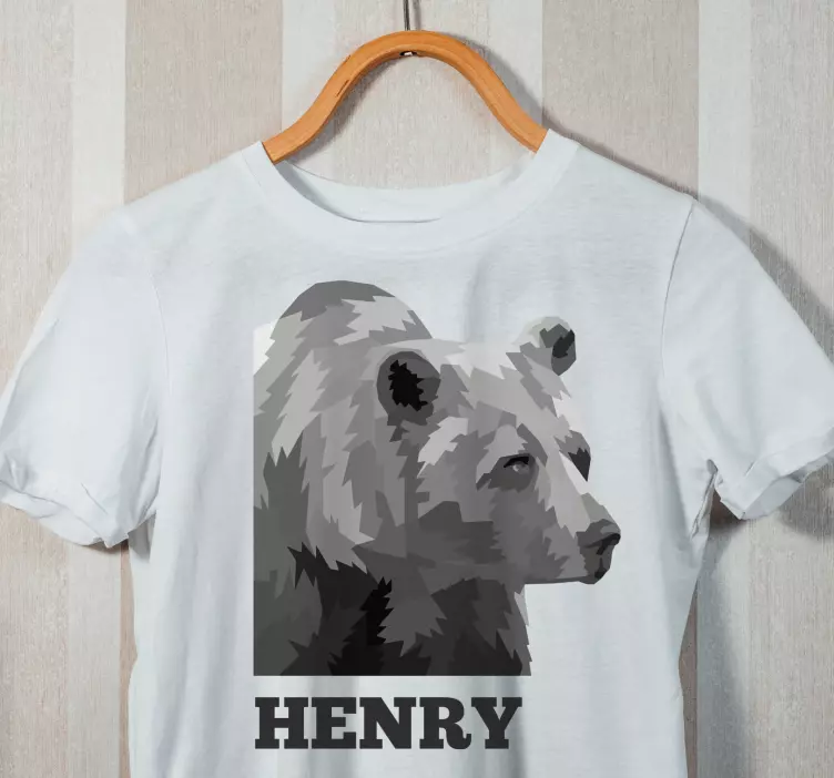 Referencia: T4983Tento dizajn zobrazuje medveďa v geometrickom štýle, čo predstavuje jedinečnú interpretáciu. Meno 'Henry' sprevádza zviera, čím sa vytvára osobný dotyk. Šedé odtiene pridávajú súčasný prvok, čo robí dizajn atraktívnym pre široké publikum.