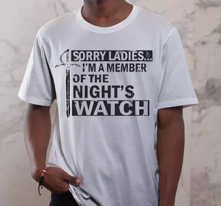 Referencia: T4932Tento biely tričko obsahuje výrazné vyhlásenie zdôrazňujúce členstvo v "night's watch", doplnené o výraznú grafiku meča. Ideálne pre tých, ktorí chcú humorne ukázať svoju náklonnosť, zatiaľ čo si užívajú pohodlné voľnočasové oblečenie.