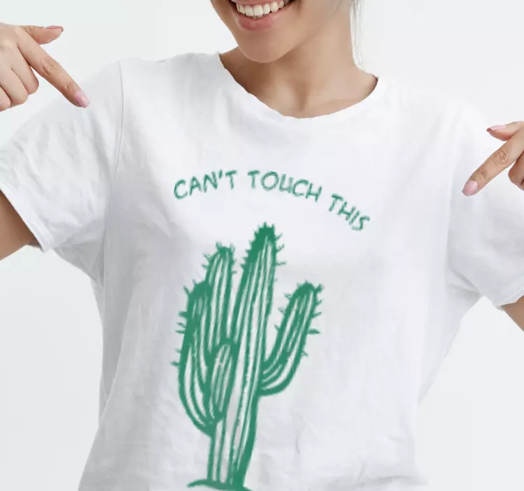 Referencia: T4734Tento hravý dizajn zobrazuje kaktus s frázou 'Can't Touch This' nad ním. Žiarivá zelená farba krásne kontrastuje s bielou látkou, čím vytvára zábavný kúsok, ktorý je ideálny na neformálne nosenie. Perfektné pre tých, ktorí ocenia humor a jedinečné štýly.