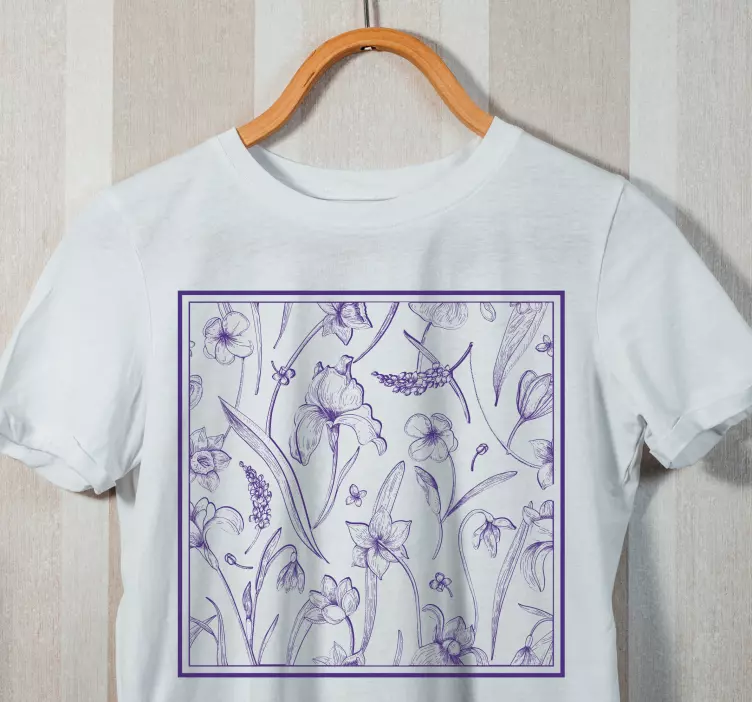 Lúka s fialovými kvetmi krokusov tričko na mieru. Ak chcete elegantný vzorovaný kvetinový dizajn na použitie počas jarných mesiacov, tento je na to ideálny. Tento dizajn má jednoduchú a elegantnú estetiku, ktorá zobrazuje sériu ručne kreslených fialových kvetov vo vzore, ktorý mieša kvety a ešte stále nekvitnú zámotky. Táto ručne kreslená košeľa s jemným fialovým kvetinovým vzorom, ktorá je tiež naozaj pohodlná a svieža na nosenie. Dokonca aj krk je vyrobený zo strešnej lycry. Táto maľovaná jednoduchá kvetinová košeľa s fialovým rámom, ktorú dostanete v rôznych veľkostiach.
