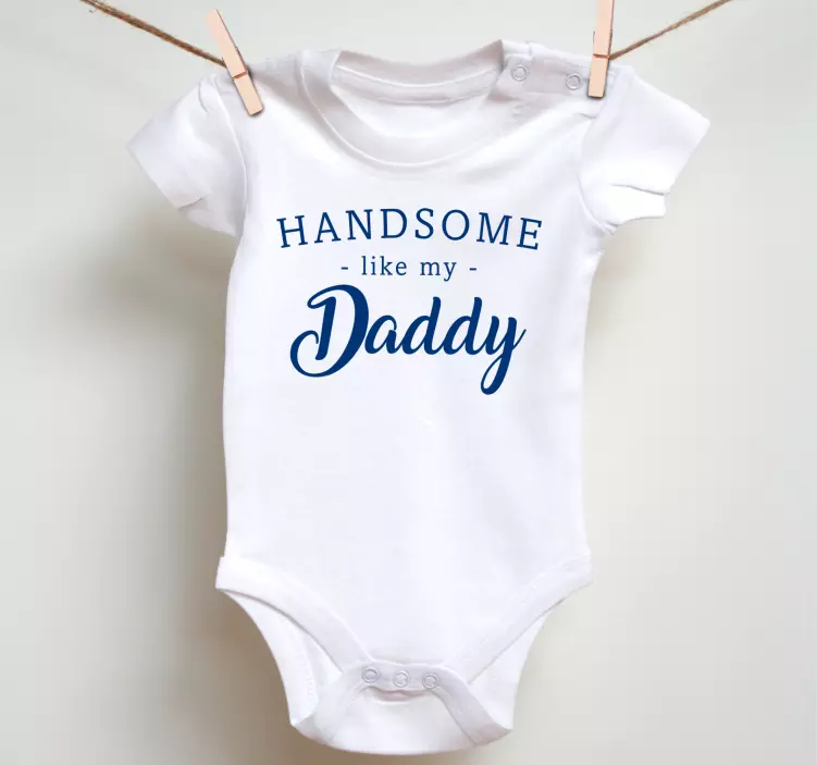 Referencia: T5450Tento pôvabný outfit obsahuje frázu 'Handsome Like Daddy', ideálnu na oslavu väzby medzi otcami a ich malými. Dizajn kombinuje hravú typografiu s klasickým vzhľadom, čo z neho robí príjemnú voľbu na akúkoľvek príležitosť.