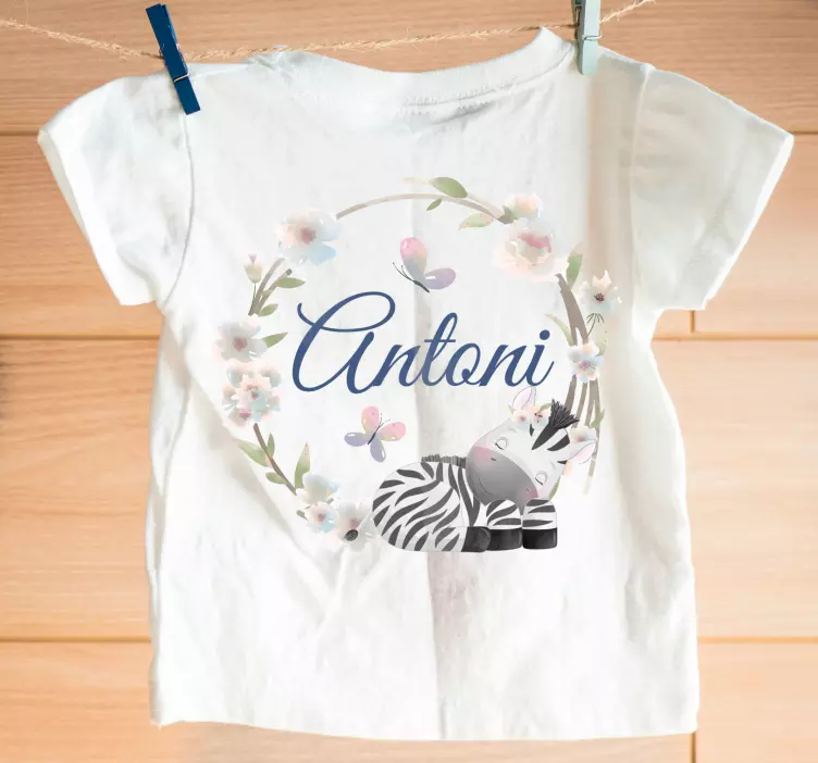 Urobte svojmu bábätku radosť s naším tričkom pre bábätká s personalizovanou zebrou, ktoré je navrhnuté s láskou a kreativitou. Tento roztomilý dizajn zobrazuje nádhernú zebru, ktorá pokojne spí v rozkvitnutom venčeku z kvetov. Akvarelový efekt dodáva tričku zvykom a prispôsobiteľným nádychom, ktorý zaujme každého. Personalizujte názov a vytvorte jedinečný kúsok pre svoje dieťa, ktorý bude nielen štýlový, ale aj rozmarný!