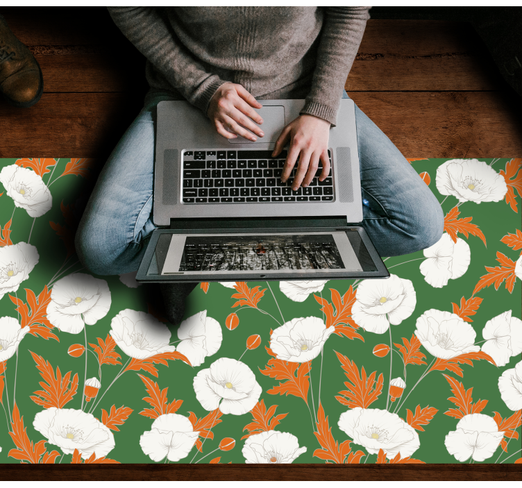 na zelenom pozadí s oranžovými listami, ktorý je ideálny pre dekoráciu vašej jedálne, obývacej izby, kuchyne alebo spálne, a týmto kvetinovým štýlom dodá dekoru super krásny nádych. Neváhajte a objednajte si tento vinylový koberec dostupný v rôznych veľkostiach, je vysoko kvalitný, odolný, protišmykový a s doručením domov.Hrúbka: 2,5 milimetra