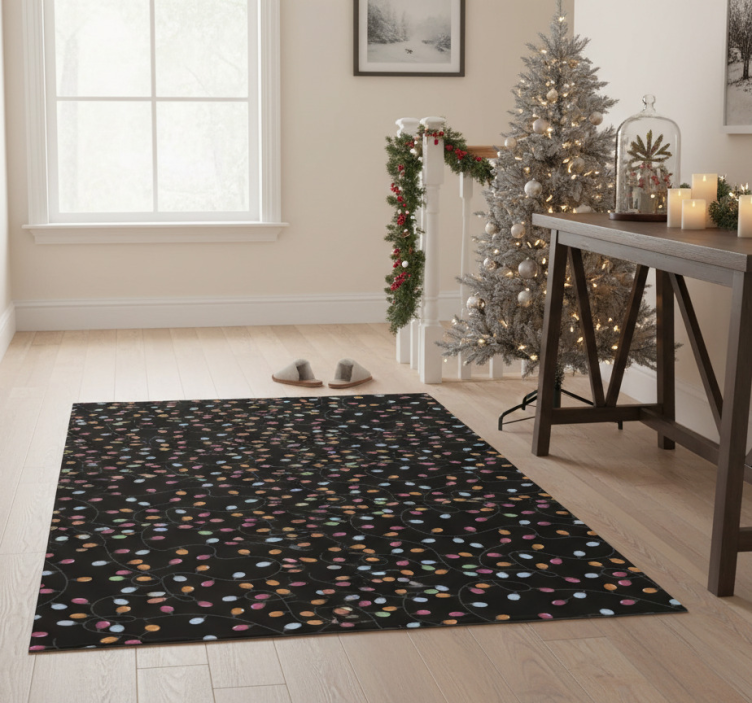 Vianočný vinylový koberec Šťastné svetlá vianočné dekorácie je ideálnym doplnkom pre každú domácnosť počas Vianoc. Jeho jedinečný dizajn a farby dodajú vášmu interiéru nádych sviatočnej atmosféry. Tento koberec dokáže zmeniť atmosféru miestnosti a vytvoriť pocit radosti a pohody. Či už ho umiestnite do obývačky, kuchyne alebo detskej izby, určite sa stane stredobodom pozornosti a prinesie úsmev na tváre všetkých návštevníkov!