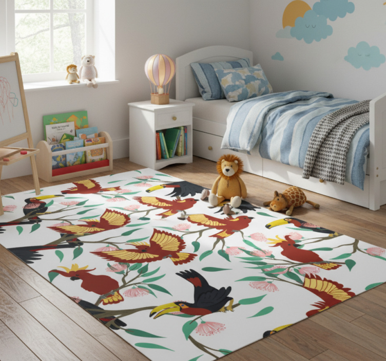 Referencia: R20069Obohatte svoj interiér s našimi vinylovými kobercami zvieratá lietajúce papagáje a tukany! Tento jedinečný dizajn zachytáva krásu tropických zvierat, pričom farebné a živé ilustrácie vytvárajú atmosféru radosti a pohody. S ich hravými motívmi sú ideálnym doplnkom pre detské izby, obývacie priestory alebo akékoľvek miesto, kde chcete pridať nádych exotiky a zábavy!