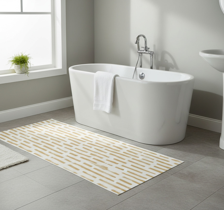 Investícia do vinylového koberca do kúpeľne moderný vzor svetlohnedých ťahov je skvelou voľbou pre každého, kto chce svojmu interiéru dodať šmrnc. Tento koberec nie lenže skrášľuje priestor, ale aj chráni podlahu a zvyšuje komfort v kúpeľni. S jeho antialergickými vlastnosťami je ideálny pre rodiny s deťmi a alergikmi. Vytvorte si svoj vlastný raj v kúpeľni a vychutnajte si príjemnú atmosféru!