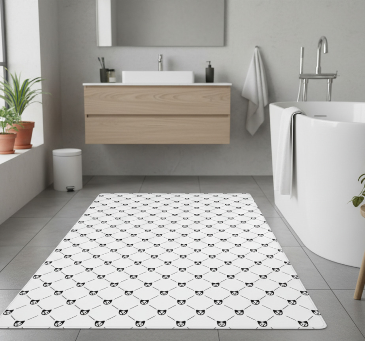 Vinylový koberec do kúpeľne s geometrickým psím vzorom je ideálnym doplnkom pre všetkých, ktorí chcú svojmu interiéru dodať jedinečný a štýlový vzhľad. Tento koberec nielenže skvele vyzerá, ale tiež je praktický a odolný. Dodá vašej kúpeľni osobitý šarm a pomôže vytvoriť útulnú atmosféru, ktorá povzbudí každý deň. Jeho farby a vzor sú navrhnuté tak, aby harmonizovali s rôznymi dekoratívnymi štýlmi, a tak sa stane neodmysliteľnou súčasťou vašich kúpeľňových dekorácií!