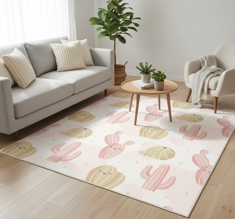 Vinylový koberec s kvetmi a roztomilým kaktusom