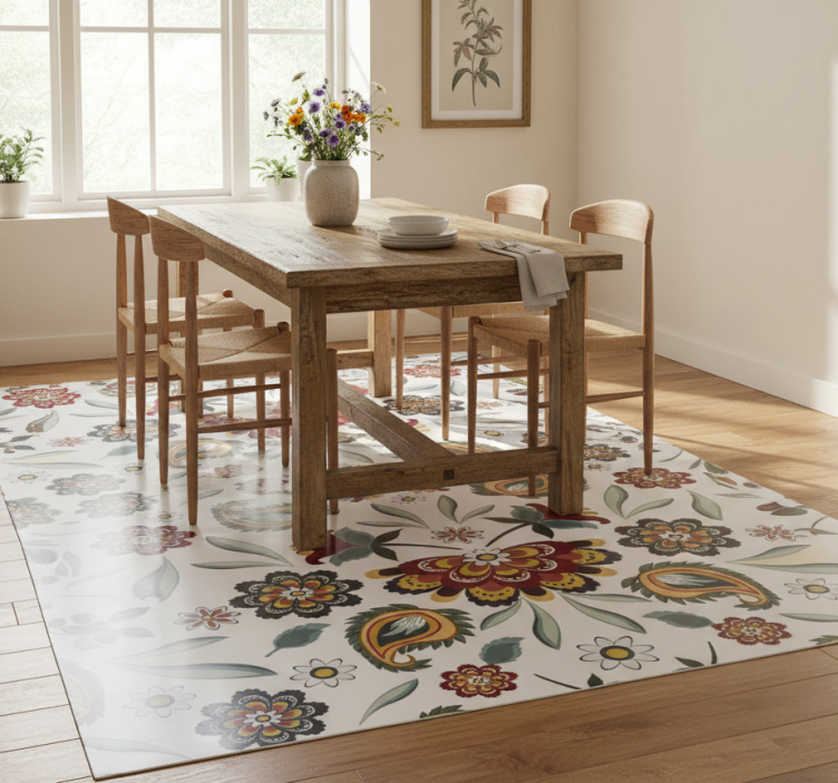Vinylový koberec s kvetmi etnického štýlu