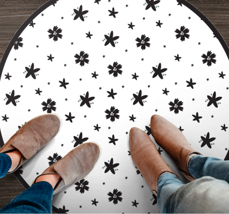 Objavte jedinečný vinylový koberec s kvetmi hviezdneho vzoru, ktorý okúzli každého svojím elegantným a moderným dizajnom. Vzor kvetinových motívov v kombinácii s čiernou a bielou farbou vytvára harmonický a štýlový prvok, ktorý sa hodí do akéhokoľvek interiéru. Tento koberec je nielen vizuálnym skvostom, ale aj praktickým doplnkom, ktorý ochráni vašu podlahu pred poškodením a dodá vášmu domovu útulnosť.