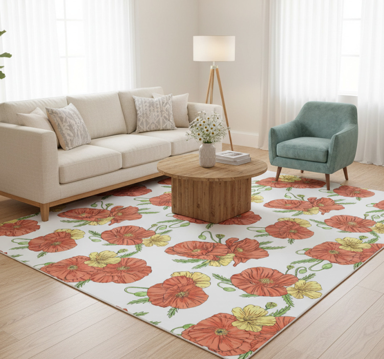 Vinylový koberec s kvetmi makov na bielom pozadí