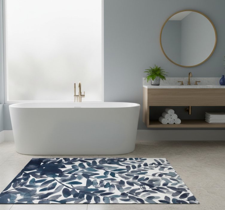 Vinylový koberec s kvetmi v modrom akvarelovom liste