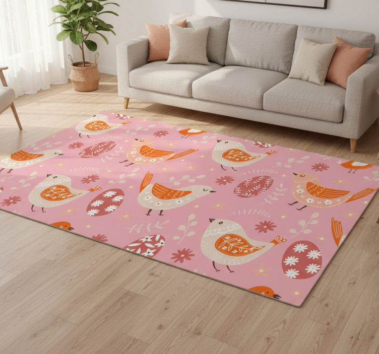Vinylový koberec s kvetmi v ružovom ľudovom vzore s vtákmi