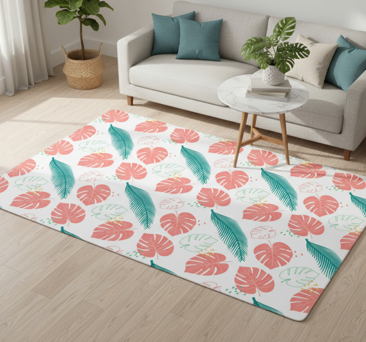 Vinylový koberec s kvetmi v ružových tropických listoch
