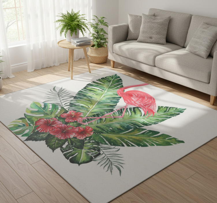 Vinylový koberec s kvetmi veľký tropický plameniak je ideálnou voľbou na dekoráciu, ak chcete oživiť svoj priestor a pridať mu šmrnc. Jeho jedinečný dizajn skvele zapadne do obývacej izby, spálne alebo kancelárie, čím vytvorí príjemnú atmosféru, v ktorej sa budete cítiť pohodlne. Tento koberec je tiež skvelý pre milovníkov prírody, ktorí si chcú do svojho domova priniesť kúsok tropického raja. Jeho farebné vzory a textúry sú navrhnuté tak, aby upútali pozornosť a dodali vašim miestnostiam charakter!