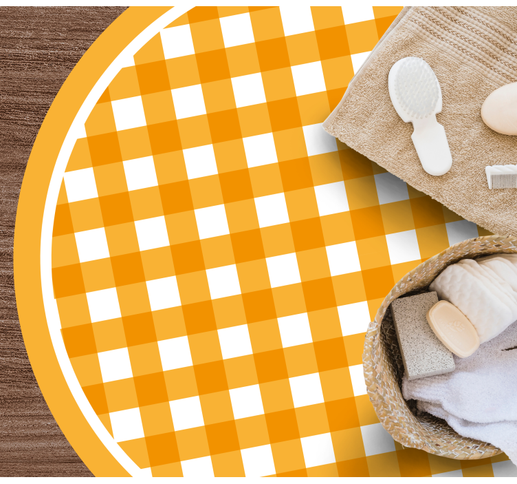 Referencia: R19703Živý, teplý kockovaný vzor obsahuje striedajúce sa oranžové a biele štvorce, čím vytvára hravý, no zároveň útulný efekt. Dizajn je kruhový, ohraničený pevným oranžovým okrajom, čo prispieva k veselému vizuálu, ktorý sa vyníma.